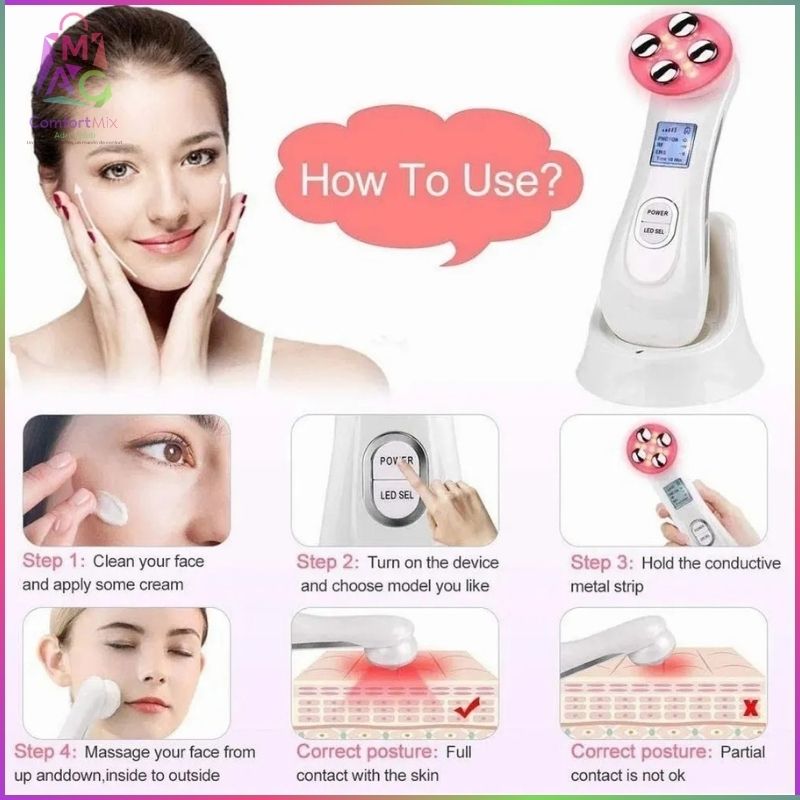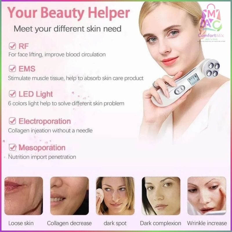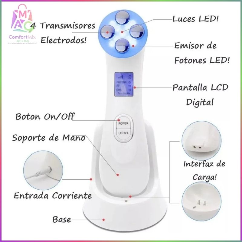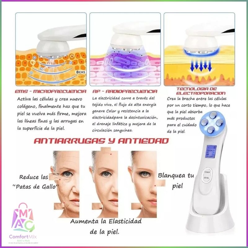 💎 Dispositivo de Belleza Ultrasónico 5 en 1 con Iones, RF, EMS y LED