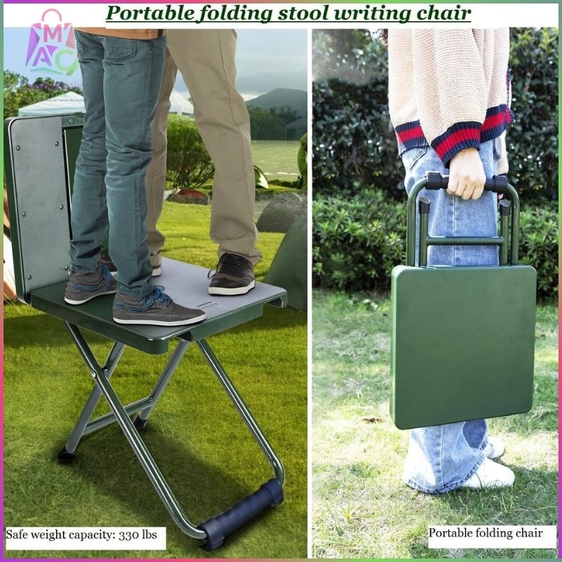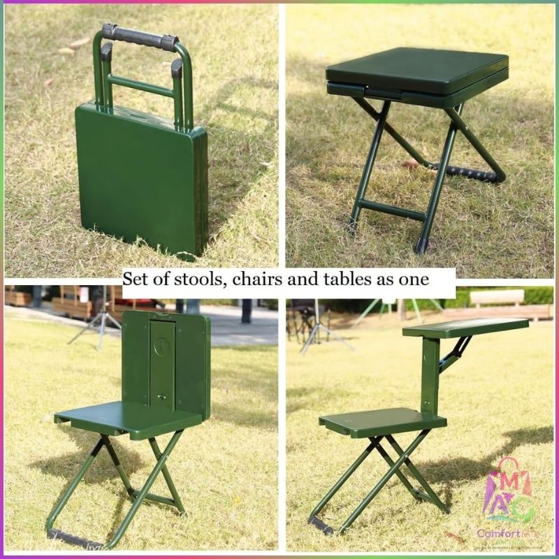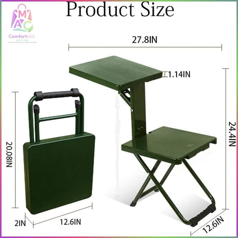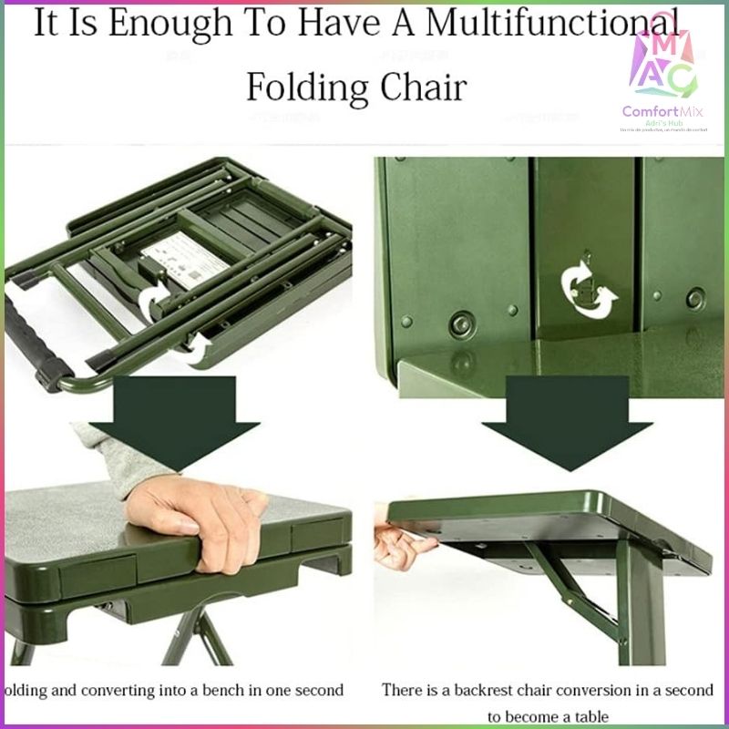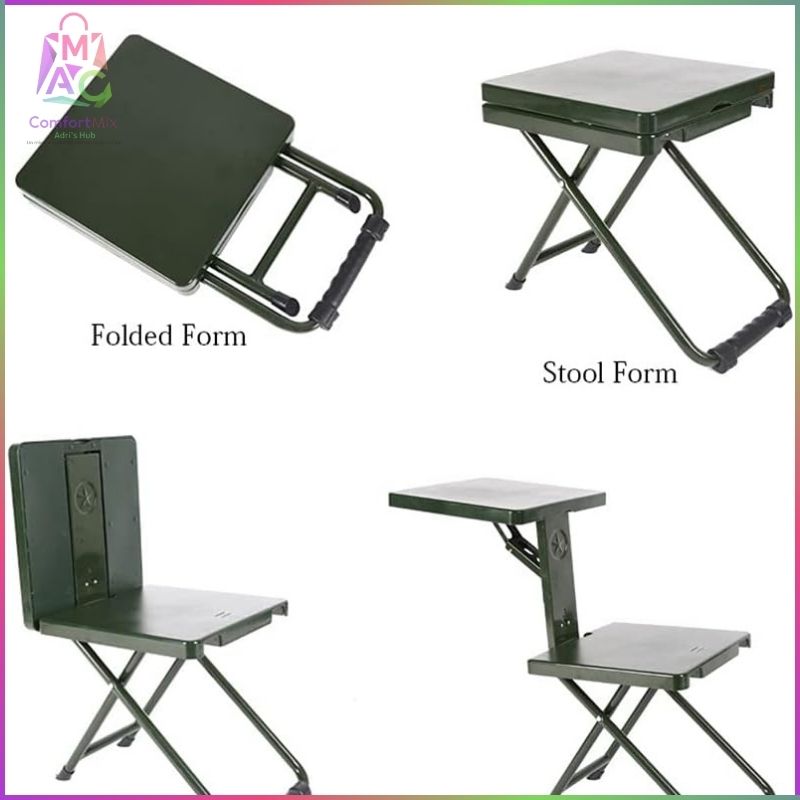 Silla Plegable Multiusos Verde Militar – 3 en 1 (Silla • Taburete • Mesa)