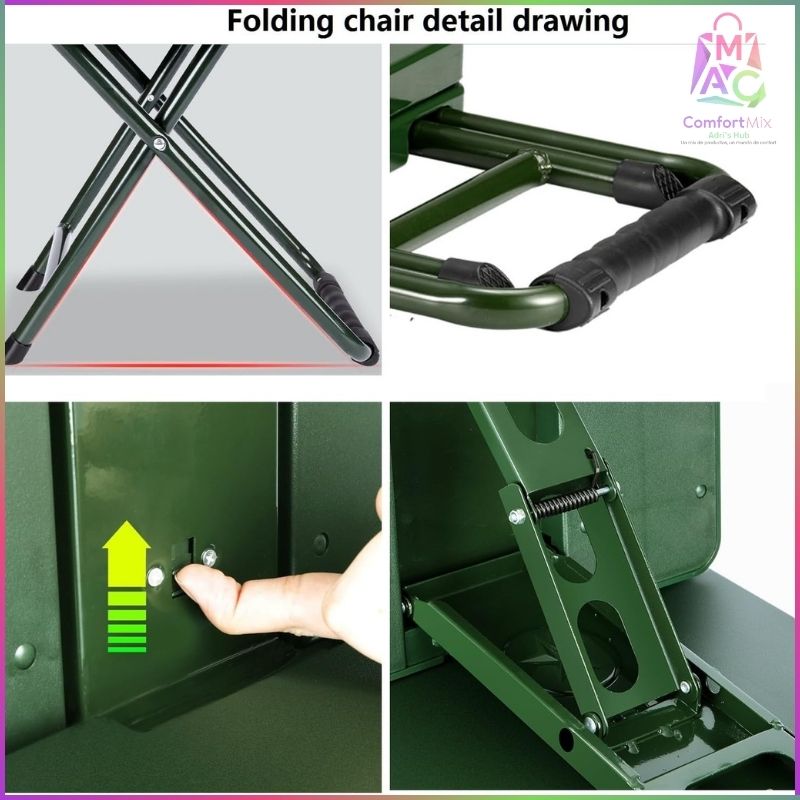 Perfecta como asiento portátil en cualquier lugar. Ideal para quienes aman la aventura y necesitan una solución cómoda, resistente y multifuncional.